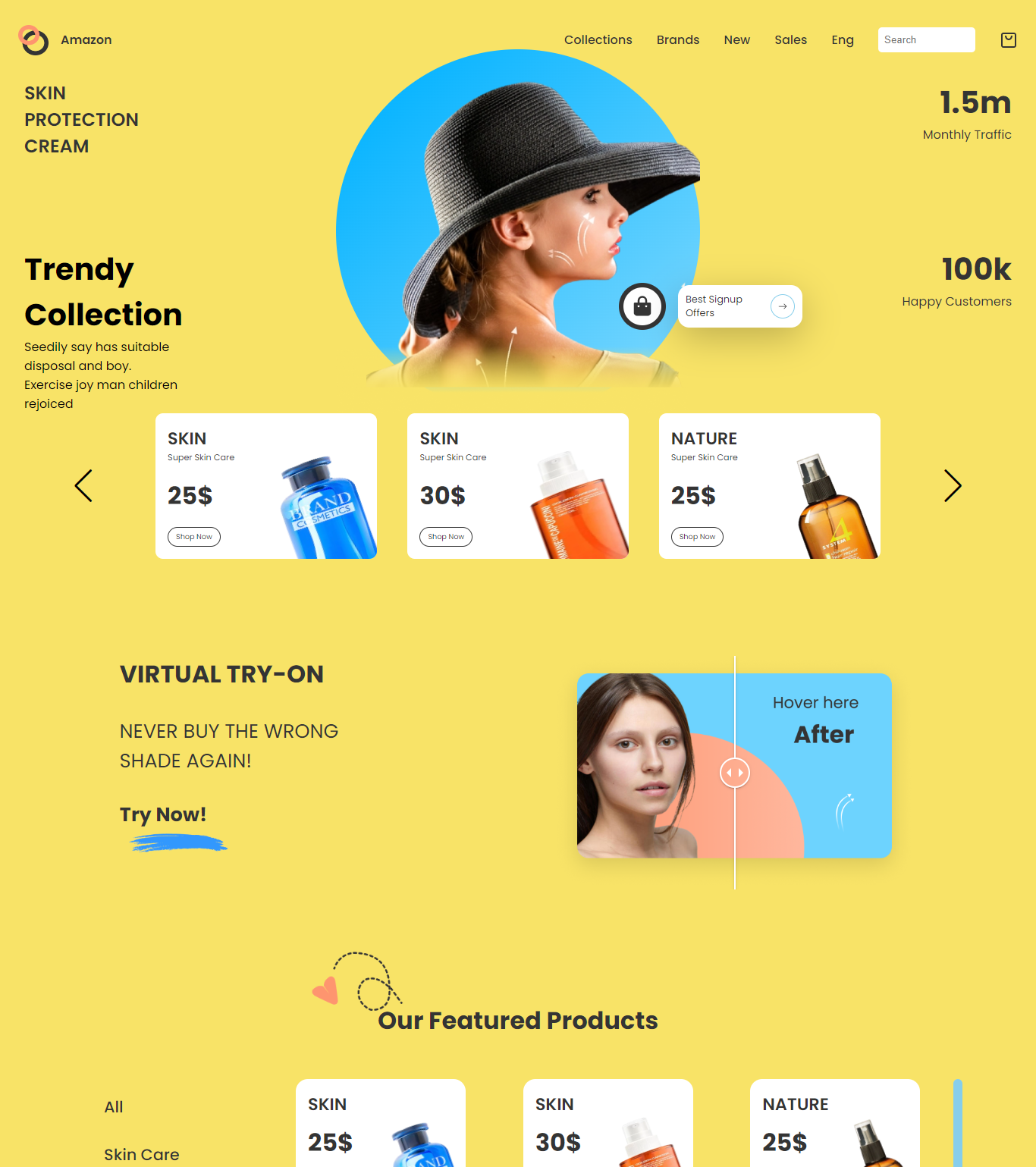 Amazon like ecommerce single page application with products enlisted and completely responsive.